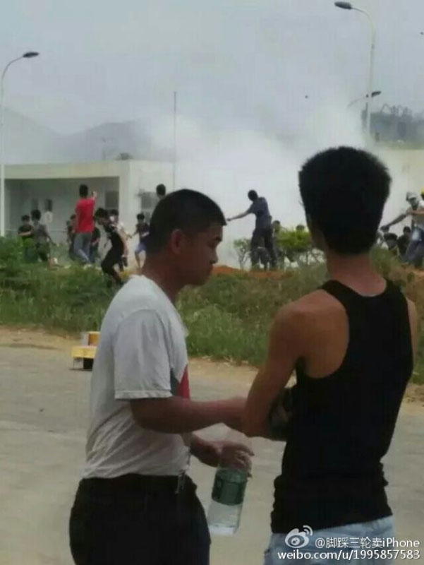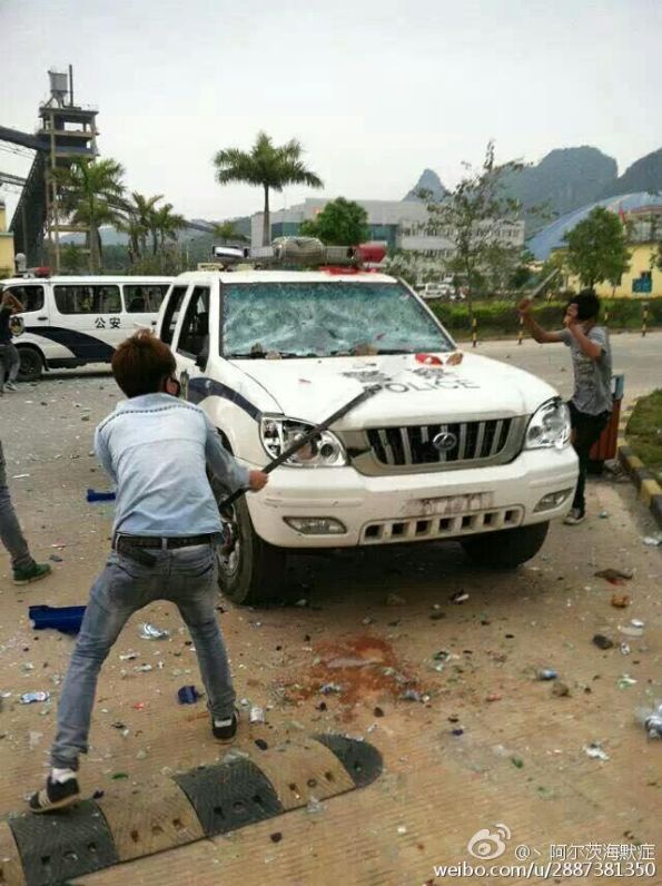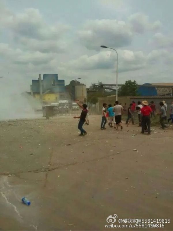 從村民上傳到網絡的圖片可見,警察向村民施放大量催淚彈,多輛警察被村民砸毀及推翻,水泥廠大門、警署被砸毀。有村民說,昨日武警打人,今日行動升級,村民封閉省道,圍攻華潤水泥廠,包圍鎮政府。另一村民亦稱,現在抗議的人升至上萬人,但記者沒有來。