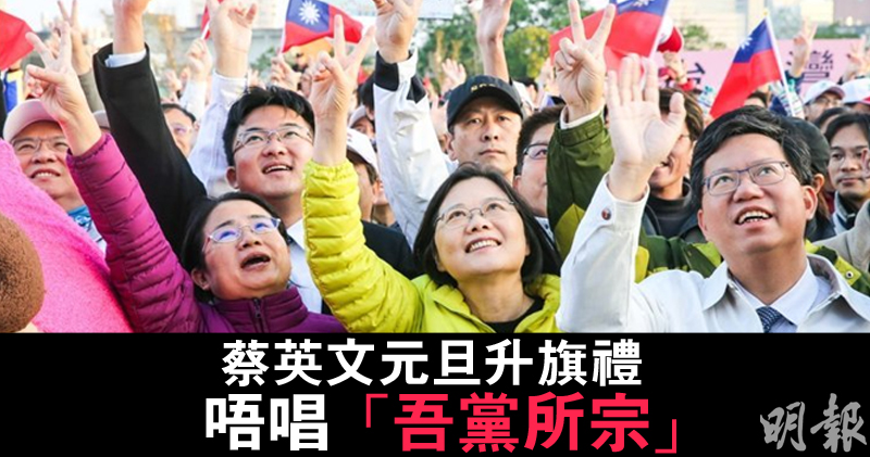 台灣民進黨總統候選人蔡英文今天參加桃園元旦升旗典禮,當各人唱中華民國國歌時未有唱完整首歌,避開歌詞中「吾黨所宗」的段落。