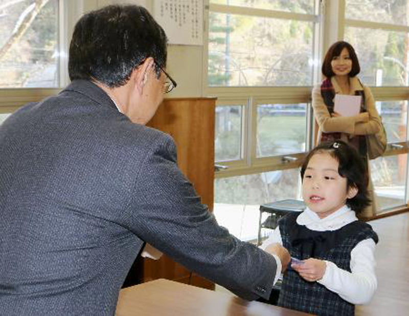去年春天為了迎接唯一一名新生,時隔7年恢復教學的日本熊本縣多良木町町立槻木小學,本月24日舉行了結業儀式。健康度過一年的小學一年級學生上治南凰(7歲)從校長手中接過結業證書,表示「升上二年級後需要學習許多東西,我將和老師一步一步努力」。