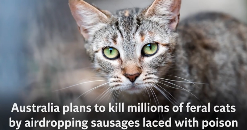 澳洲政府為了保護原生物種生態,近年向兇猛的野貓開戰,包括透過空投毒香腸在內的方法,冀明年前達至5年間毒殺200萬隻野貓的目標。