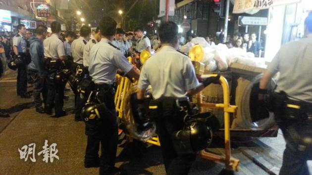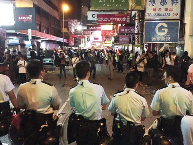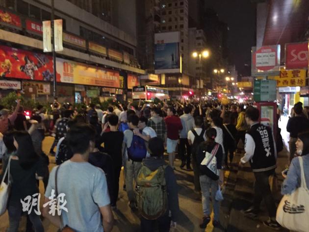 未幾,數百人又往山東街方向進佔馬路。警方不斷嘗試驅趕示威者上行人路,但示威者又不停在其他地方突擊亂過馬路,令警方疲於奔命。