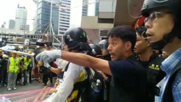 金鐘海富混戰期間,有警員隔着障礙物向一群信奉天主教的示威者指罵。 數名戴上頭盔的便衣警員,不停以粗口斥罵一群信奉天主教的示威者,「X你,信咩天主教呀?耶穌咁教你?學X壞晒!」,又指他們打「伙記」及稱呼他們為「耶X」。示威者回應說,「阿sir,我們冇衝擊」。其中一名警員大喊,「唔驚你就行過嚟,唔好講咁多!」,又手持警棍不停向示威者方向揮動。(即時新聞) 相關字詞﹕政改與佔中 編輯推介