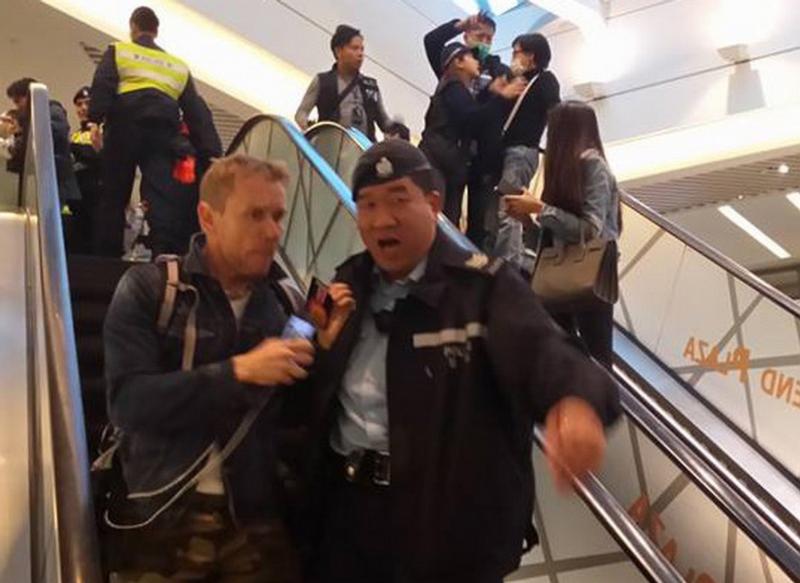 《bc magazine》網站今天發表文章及短片,講述記者Richard Scotford的遭遇。據Richard表示,當時他站在一條已停機的扶手電梯上方,「當時胡椒噴霧橫飛,明顯地我不能前行,警方已在下方封了電梯,隨着警方向前推進,我已身處警方防線之後」。