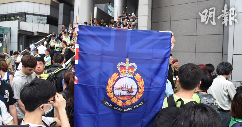 當遊行隊伍到達警總後,有人在警員面前高舉皇家香港警察的旗幟,未被阻止。
