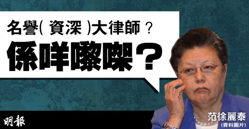 港大校委會昨日否決任命陳文敏作副校長,多名校委被指質疑陳的學術資格。根據資料,陳文敏是全港唯一一位「名譽資深大律師」,但全國人大常委范徐麗泰直言:「名譽資深大律師?係咩嚟架?一係就大律師,一係就唔係大律師」。