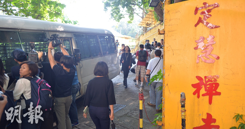 下午2時許,入境處人員在寺內帶走4人,當中包括住持釋智定及一名男僧人釋如智,二人涉嫌作出虛假陳述。另外兩名女子為僱傭關係,女僱主涉嫌協助及教唆他人違反逗留條件,女傭則涉違反逗留條件。4人帶走時均換上便衣,戴上口罩及帽。