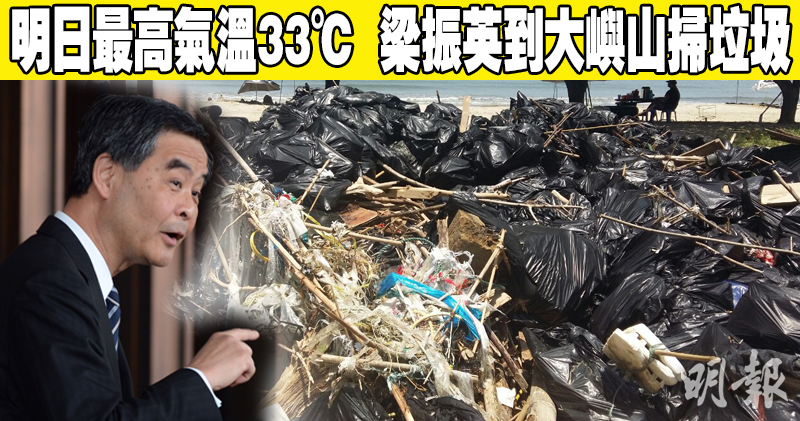 政府新聞處晚上發出新聞稿,指特首梁振英明早上將會在大嶼山水口參與清潔海岸行動,屆時環境局長黃錦星、環境局常任秘書長/環境保護署長王倩儀、食物環境衛生署長劉利群和康樂及文化事務署長李美嫦將會陪同,傳媒代表可於明早9時半在東涌港鐵站集會。