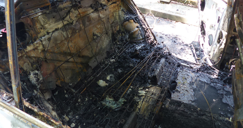 屯門良景邨今日發生情節離奇的縱火燒的士案,28歲姓陳男子縱火後一度逃走,七旬老司機追出,與途人合力把疑人制服,交到場警員拘捕帶署調查。