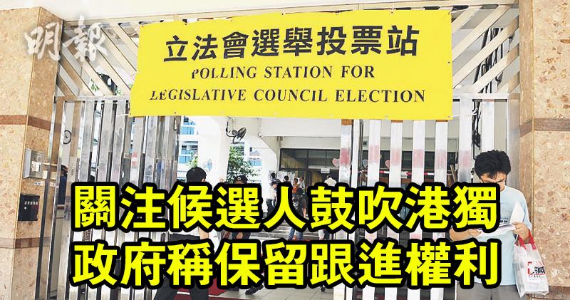 政府發言人稱,關注到立法會選舉候選人當中,有個別人士在選舉活動期間鼓吹、推動港獨,與選前簽署的擁護《基本法》聲明相違背。