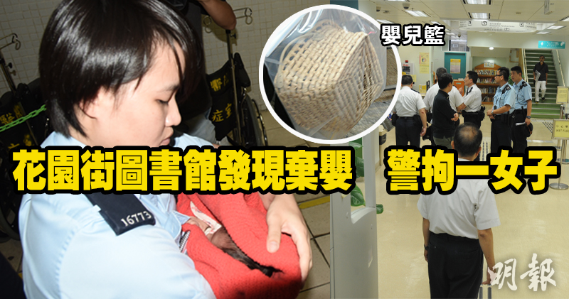 中午12時許,旺角花園街市政大廈圖書館發現棄嬰,有職員在圖書館内4樓兒童多媒體資料館室内發現一名1個月的男嬰,於是報警,男嬰由救護車送院治理。警方已拘捕一名涉案女子。 其他報道:1月大男嬰獨留旺角圖書館 地上有嬰兒籃其他報道:落馬洲客貨車撞一家三口 7歲男童不治其他報道:澳門男涉強姦及與少女發生性行為被捕 4受害人僅13至14歲相關字詞﹕編輯推介 棄嬰