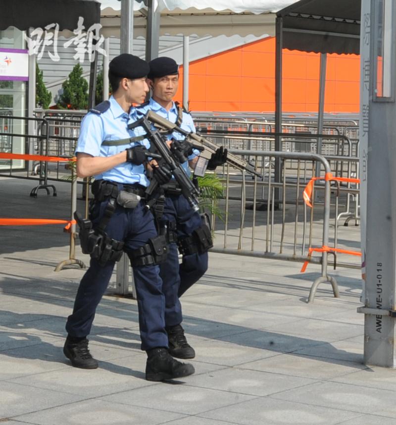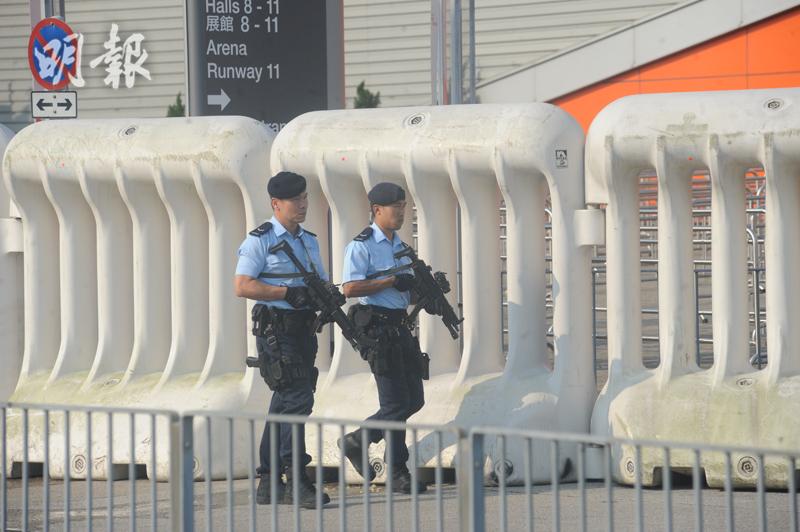 警方清晨已在博覽館佈防,大批警員在場館外巡邏,包括手持SIG 516 CQB半自動步槍的反恐特勤隊。博覽館的東、西翼出入口設置巨型水馬和鐵馬,外圍亦有封路措施,進入場館的車輛要先經過警方檢查。博覽館內保安嚴密,機場快線博覽館站有反恐特勤隊隊員駐守,警犬隊亦在場內準備。公眾進入場館時,要先通過安檢,經過金屬探測器及X光機檢測。