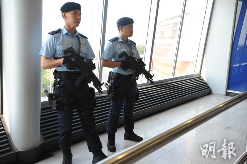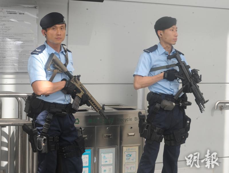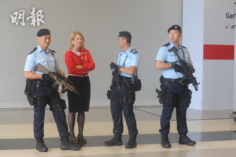 印尼總統佐科維多多今日率領代表團訪問香港2天,警方評估國際恐怖襲擊形勢後,安排屬歷來較高級別的反恐措施,首次派出反恐特勤隊,手持新配置的SIG 516 CQB半自動步槍在亞洲博覽館巡邏,並出動多個部門合共近千警力佈防。