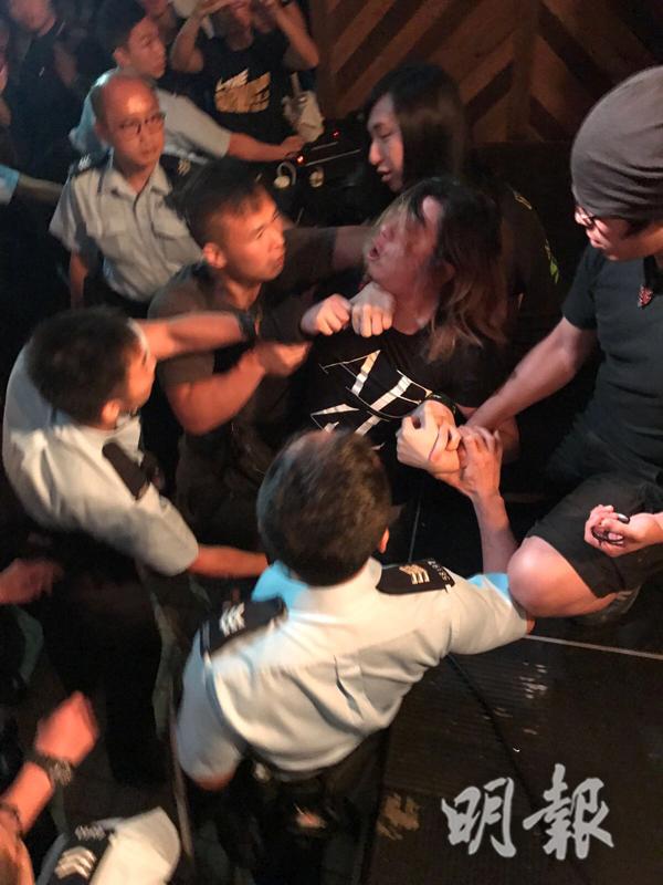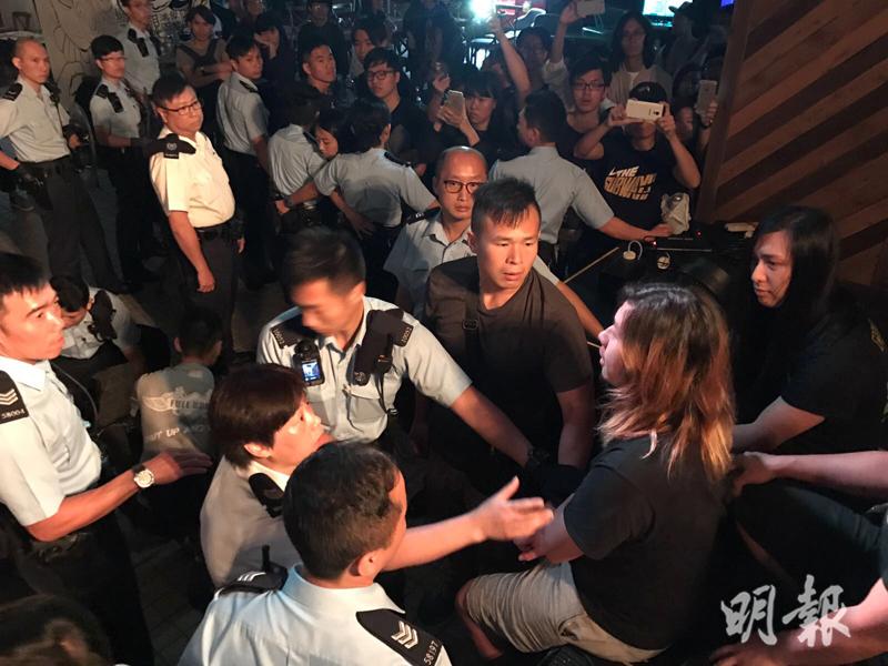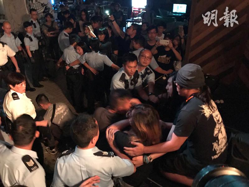 大批持防暴盾牌警員及警犬到場增援,雙方曾發生衝突及推撞,警方事後於Hidden Agenda演出場地拉起封鎖線。據悉,多人被帶返警署,最少2人受傷,送院治理。