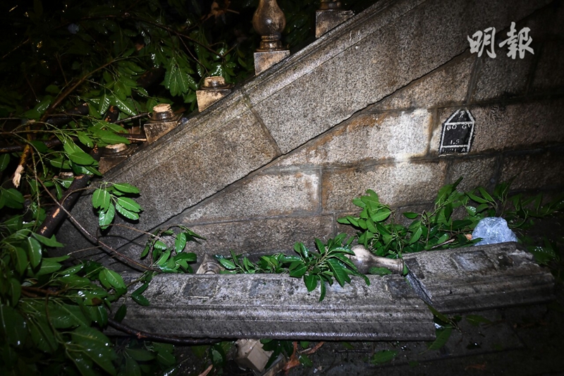 警方晚上7點10分接到市民報案,都爹利街有塌樹令石階和煤氣燈損毀。消防員到場發現有氣體泄漏,已聯絡煤氣公司派員跟進。據了解,現場有三盞氣燈毀爛,還有一盞燈罩破掉。