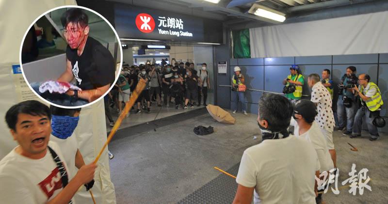 鄺先生表示,昨晚近11時下班,準備由元朗站乘西鐵返回屯門住處,入閘後發現一批白衣者打人,數人被打至倒地,多人流血。當時鄺先生拿着手機拍攝,及後被兩個有紋身白衣者,分別拿着木棍和傘從後襲擊,「幾十個人衝過來」,見人就打。鄺先生在博愛醫院等候照X光,背部和手指腫了,頭部或需要縫針。