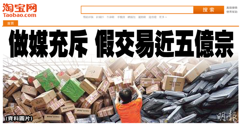 《華爾街日報》踢爆內地淘寶網上有活躍的「刷單」(做媒)集團,從事替淘寶商戶偽造虛假交易,達到廣告宣傳的效果。報道更指,「刷單」集團僱用上千人,並對僱員有「專家培訓」。