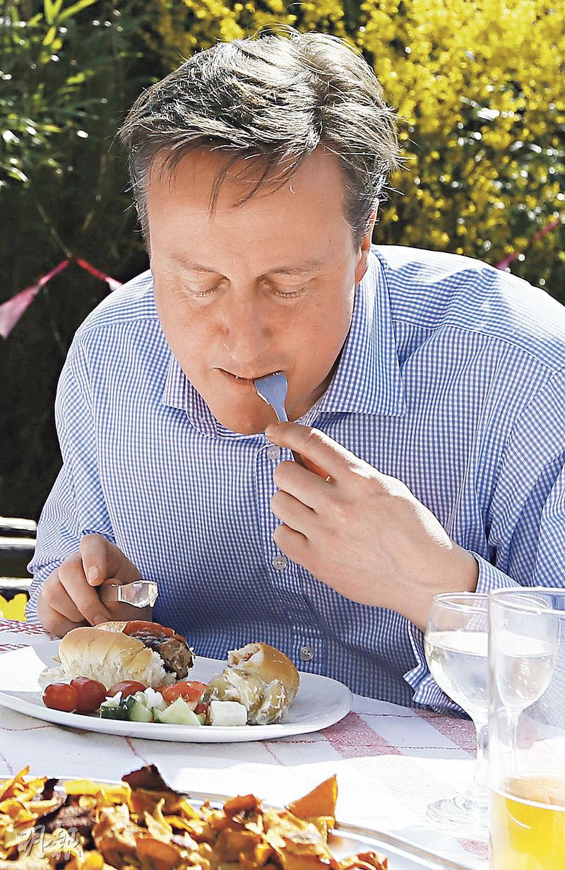 【明報專訊】英國下月大選,首相卡梅倫為求拉票,周一(6日)以一副平民打扮參加一場露天燒烤會,但卻被一對刀叉「出賣」——他用刀叉吃熱狗,遭輿論揶揄難掩貴氣。卡梅倫領導的保守黨本來就被詬病權貴味重,今次事件進一步放大卡梅倫與平民脫節的印象,影響其選情。
